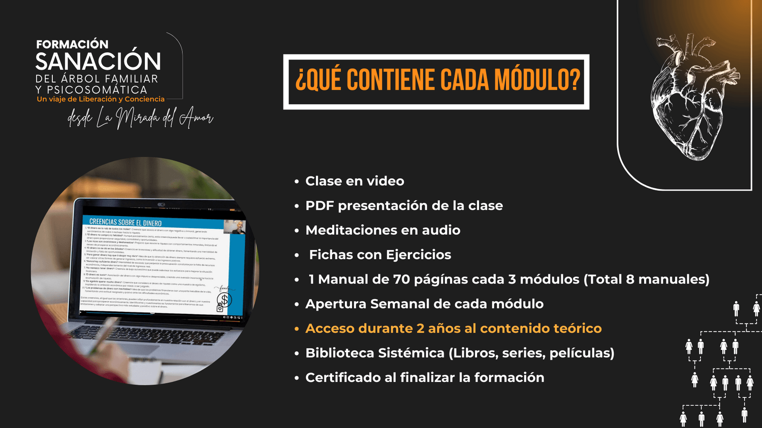 Toda la formación grabada y accesible "por 2 años" . Posibilidad de seguir estudiando los siguientes módulos